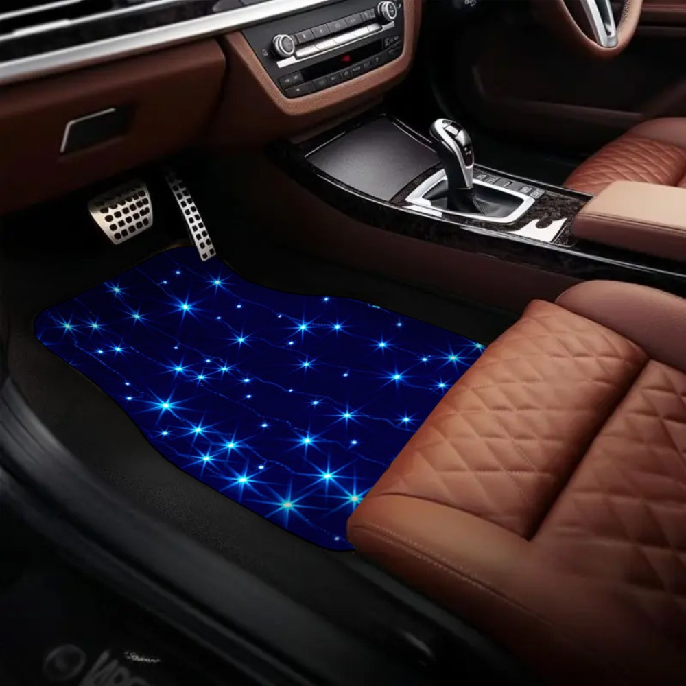 4pcs Blue Starry Sky Pattern Theme Universal SUV Car Mat, Logo Theme Elements for Front and Rear Seats of All Vehicles Stylish and durable car accessories All-season GM trim accessories for interior decoration Christmas Halloween.