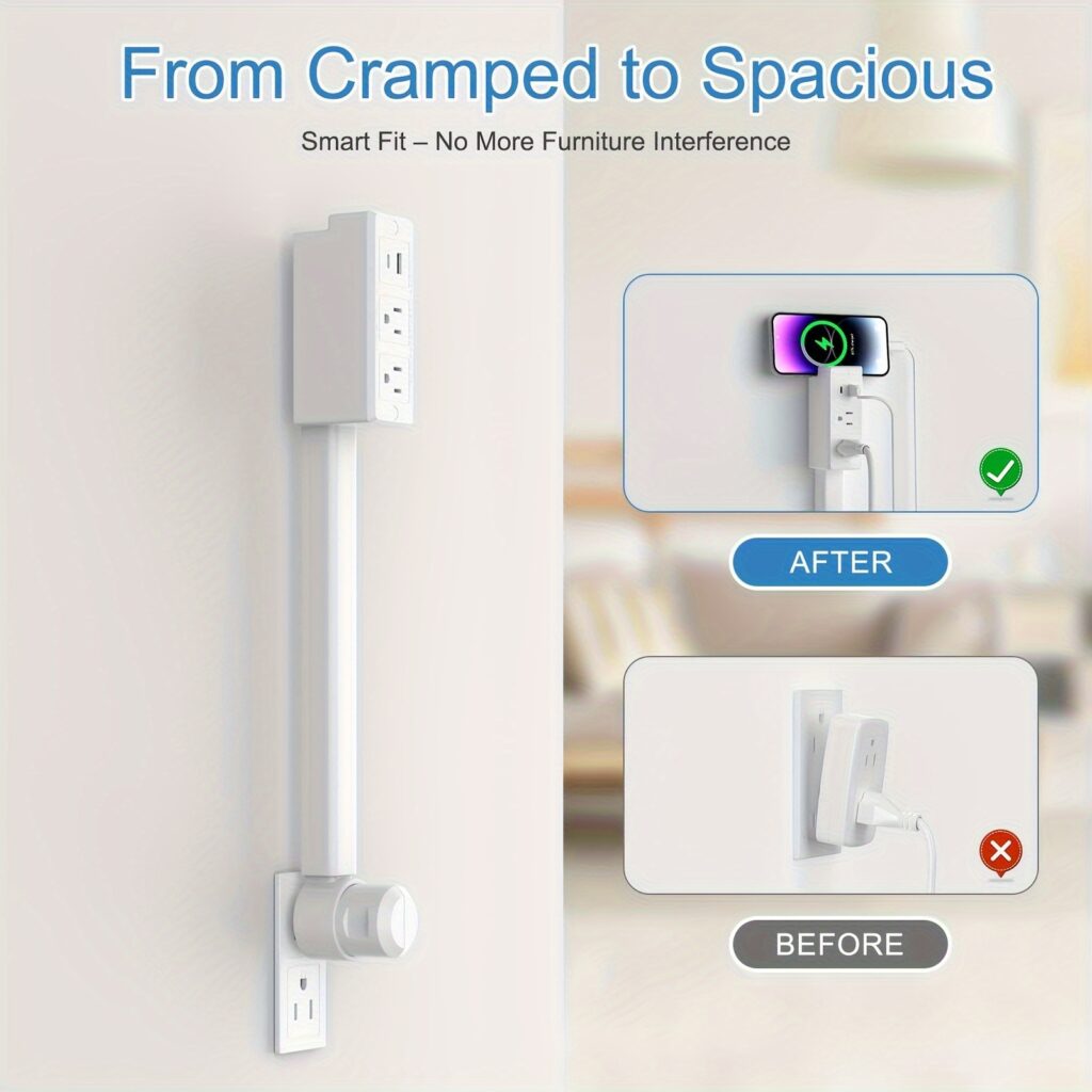 1pc Heavy-Duty 27.5″ Extendable Outlet Extender with USB-A & USB-C Ports, 180° Rotating Plug, Space-Saving Design for Home & Office – Enthusiasts