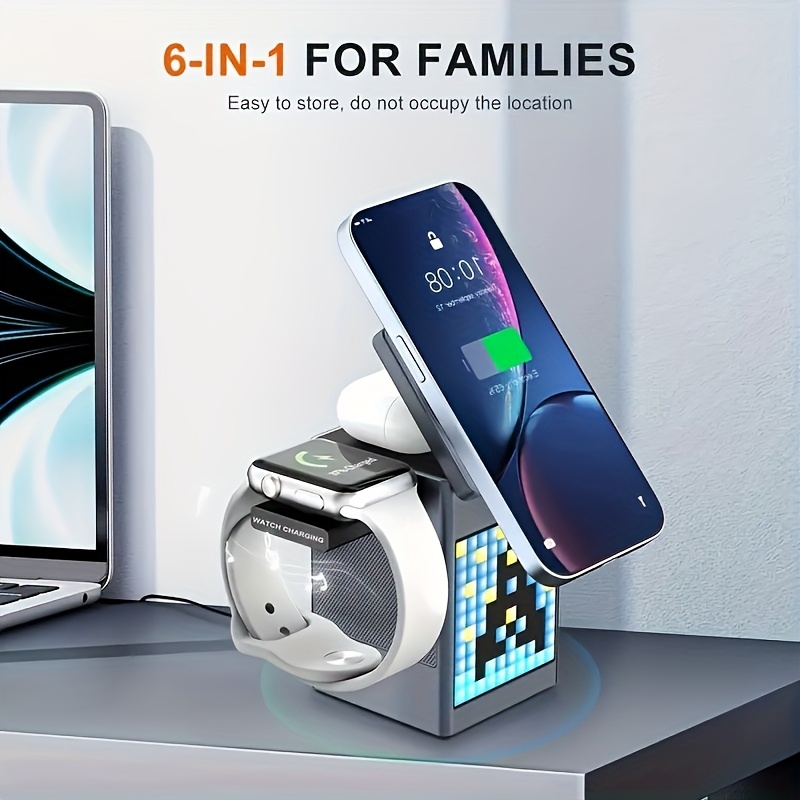 6-in-1 Fast Wireless Charging Station With Wireless Speaker, Digital Clock & Ambient Light – Magnetic Charger For IPhone 16/15/14/13/12 & for AirPods | Ideal Christmas Gift For Tech Lovers, USB-C Hub