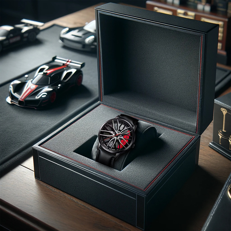 1pc Men’S Red PU Belt Sports Racing Wheel Quartz Watch