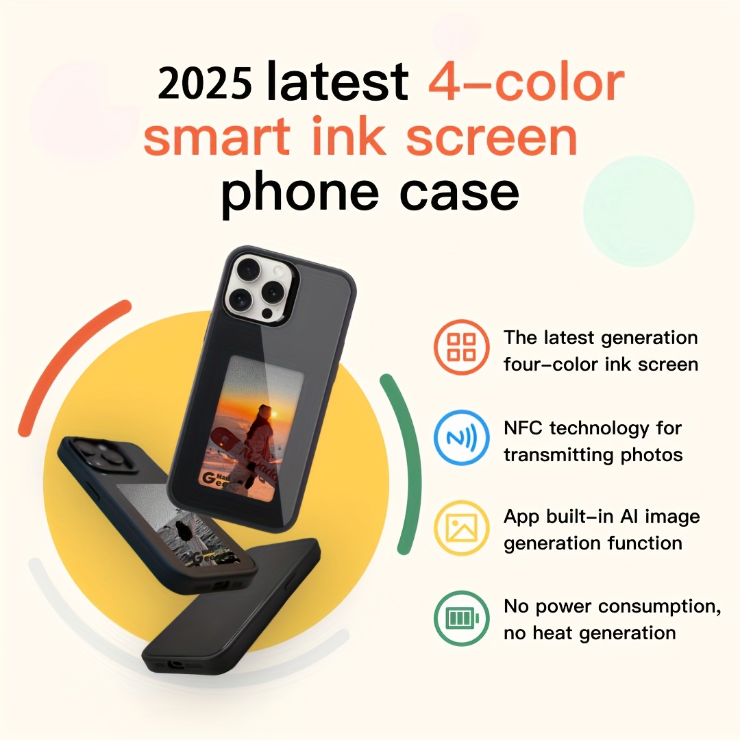 [HD Version] NFC E-Ink Phone Case, Change The Photo On The Case Anytime. Smart DIY Case With One Tap Via The App. Built-in Memo, Calendar, And AI Photo Generation. The Latest Generation Four-color Screen, Enhanced Drop Protection, A Fun Holiday Gift. Compatible With for iphone 13/14/15 Pro Max Series.