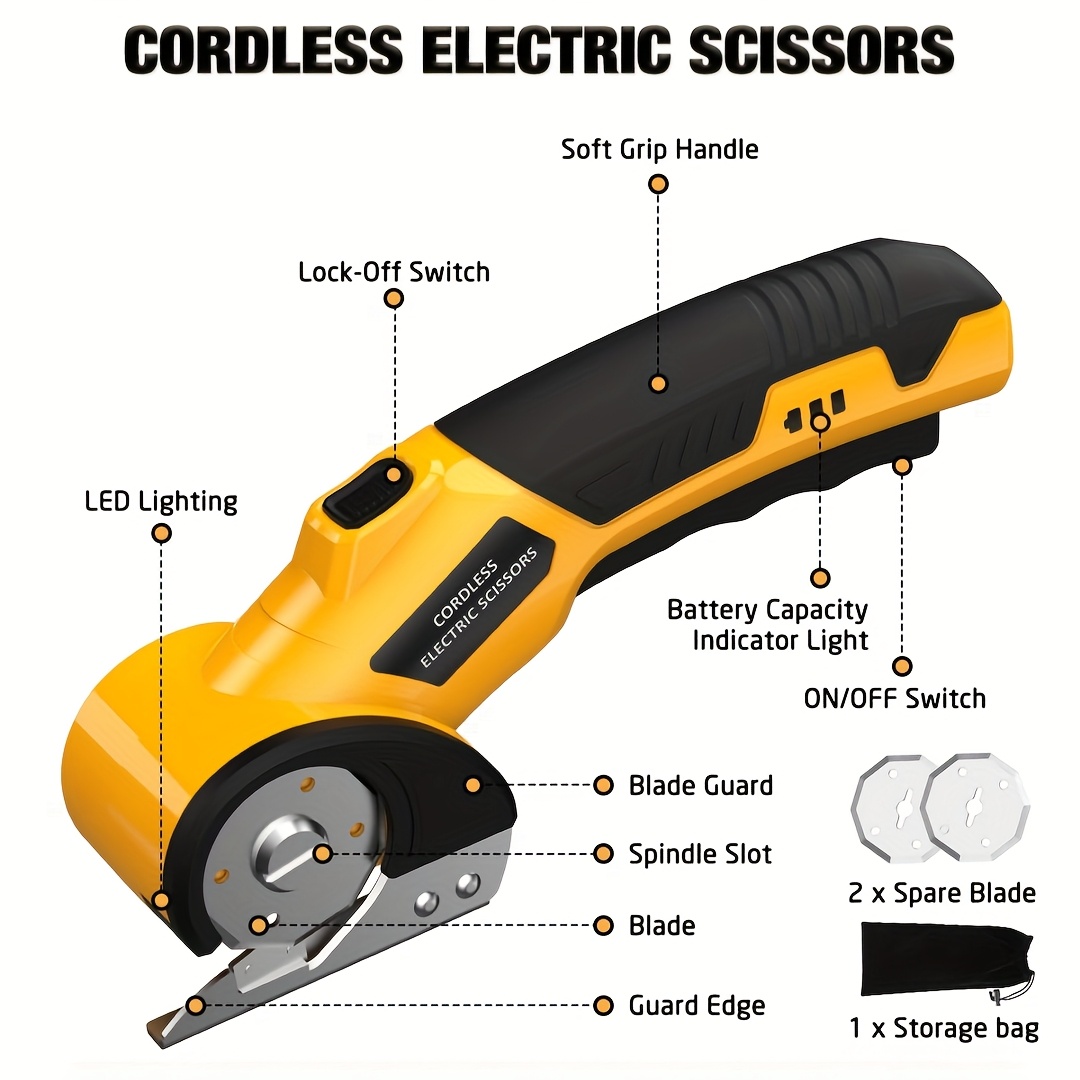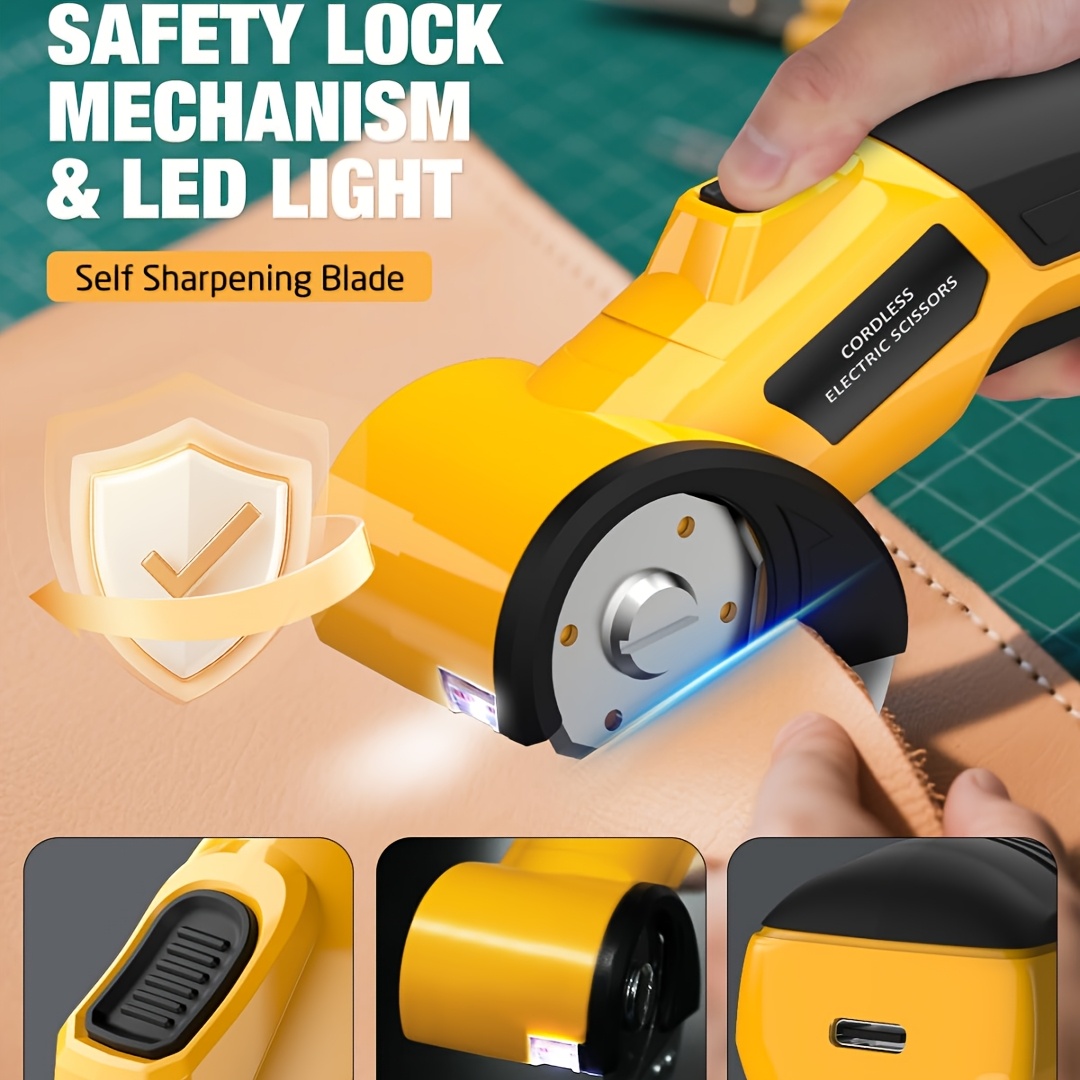 Heavy-Duty Cordless Electric Scissors with 3 Blades & 4V 2000mAh – – Rotary Cutter, Safety Lock & LED Light for Leather, Carpet, Plastic, Cardboard Cutting – Professional-Grade Fabric/Box Cutter for DIY, Workshops, Crafts, Cordless Power Tools, Carpet Fitting Tools, Power Scissors, Cordless Saw, Rotary Cutter For Fabric, Cordless Pruning Shears, Saw Cordless, Carpet Tools, Cordless Tools, Cloth Cutter, Scissors Sewing, Cordless Multitool, Craft Machines, Power Tools Cordless,