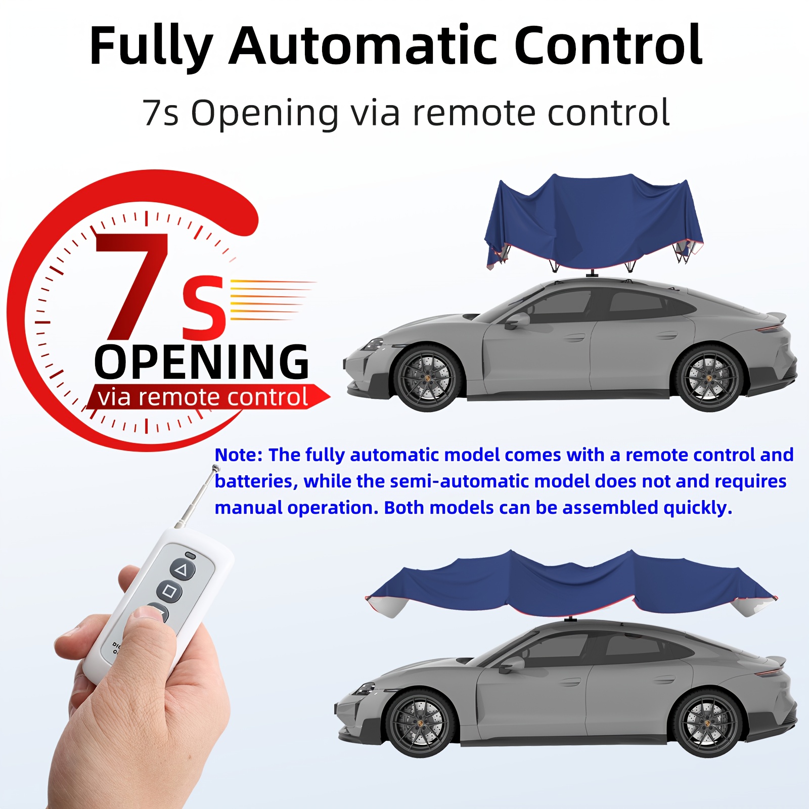 YOLENY Car Umbrella, Fully/Semi-Automatic with Remote Control, Retractable Cover for Sun and Weather Shelter, Electric Folding Outdoor Carport Protection